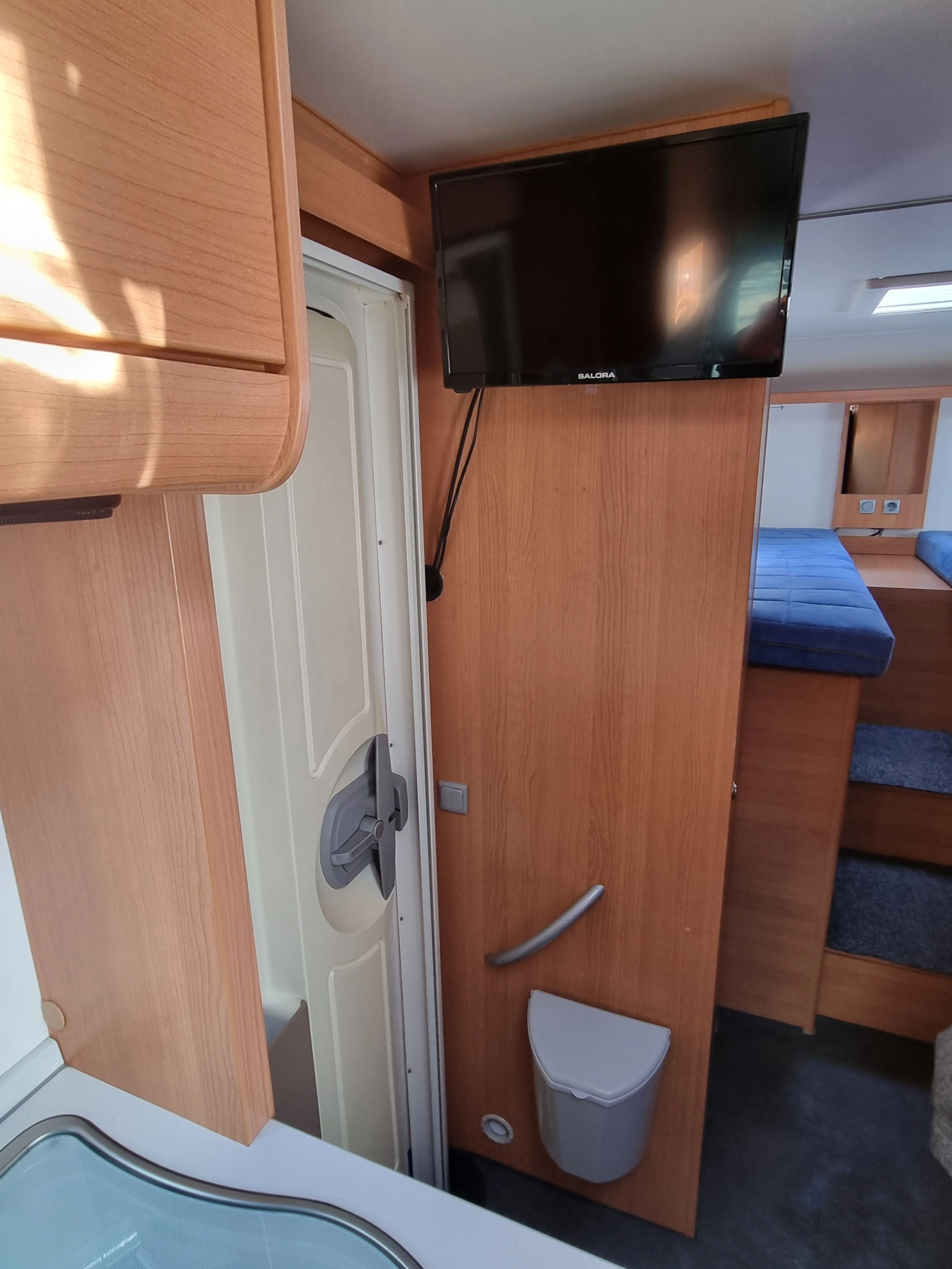 De camper beschikt over een omvormer, zodat er ook stroom gebruikt kan worden als de camper niet aan stroom van de camping staat.