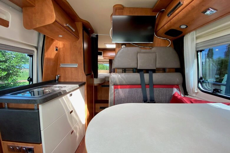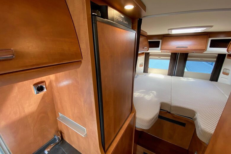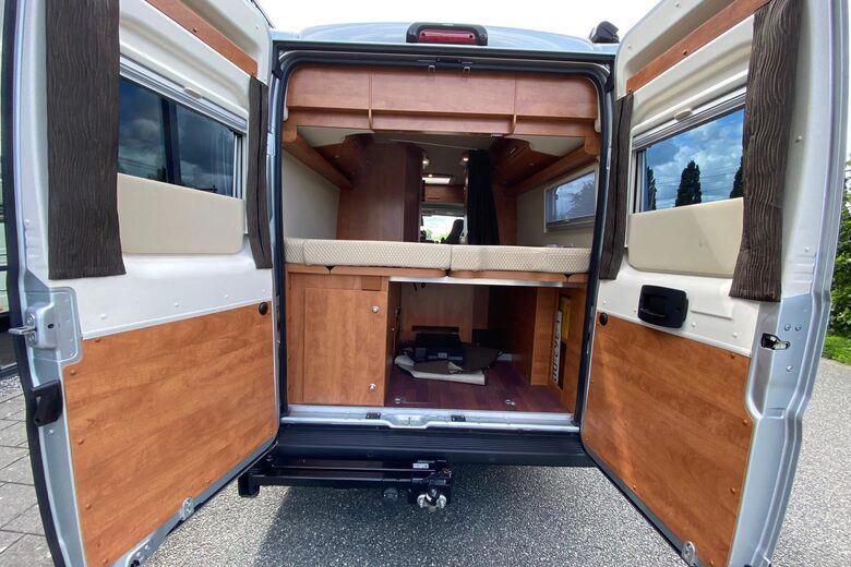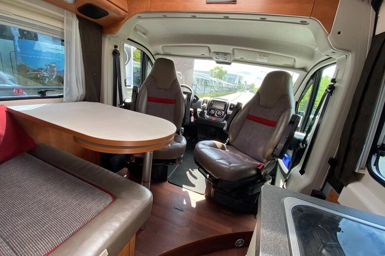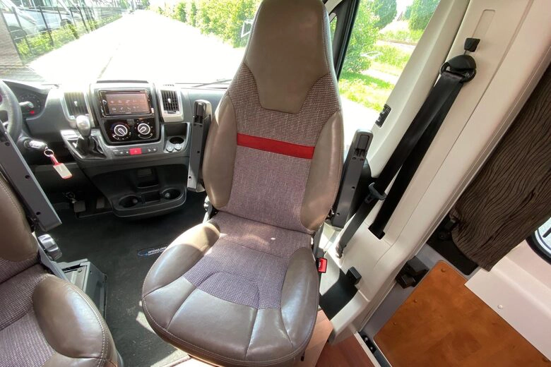 Met zijn verfijnde afwerking en doordachte ontwerp is deze camper uitgerust met twee enkele bedden die moeiteloos kunnen worden omgezet tot één groot bed. De krachtige 2.3 liter Fiat Motor met 150 pk en een automatische 6-traps versnelling verzekeren een soepele en plezierige rit, terwijl de wegdraaibare fietsendrager achterop plaats biedt aan twee elektrische fietsen, waardoor u volledige mobiliteit hebt om uw omgeving te verkennen.