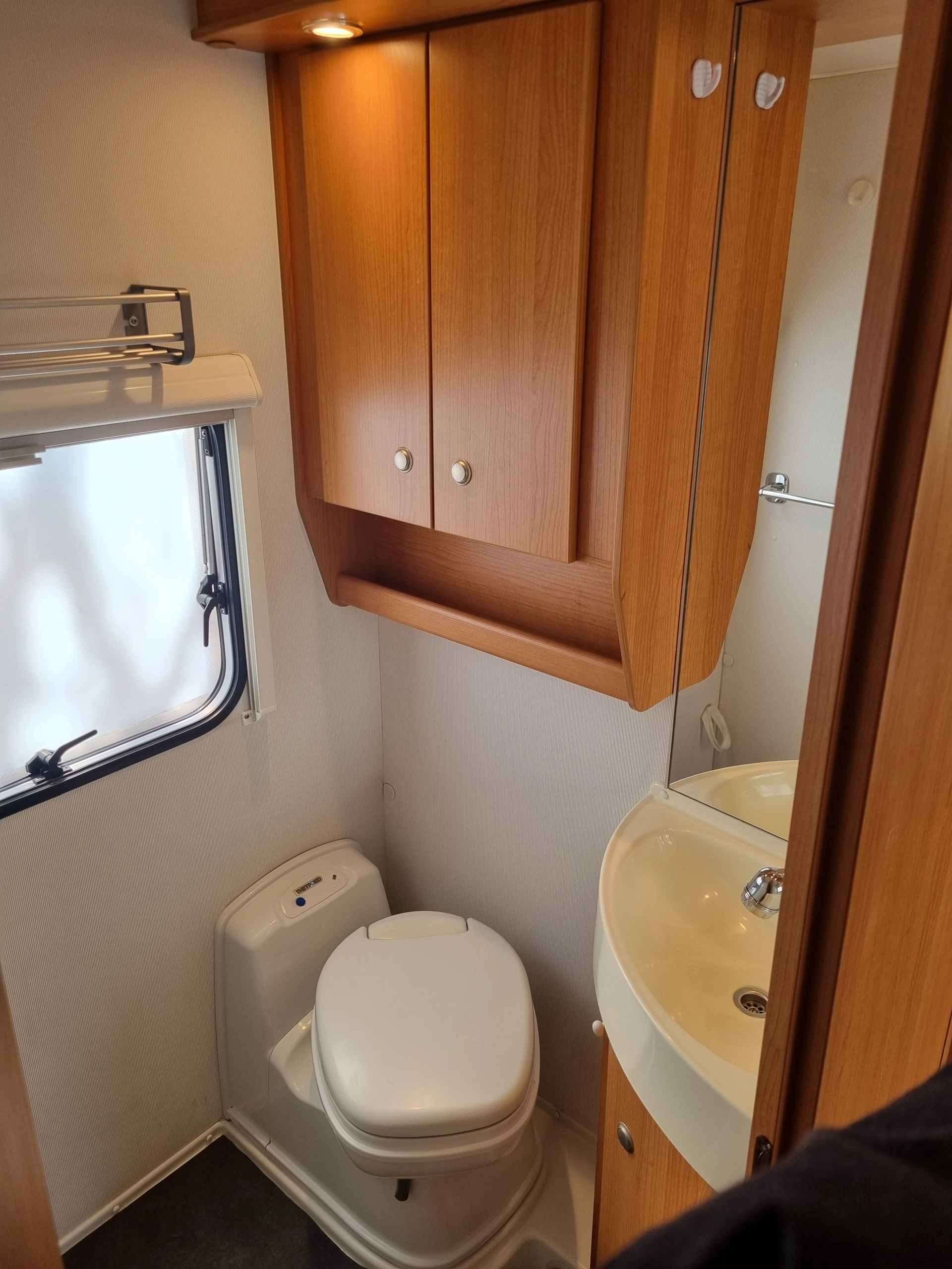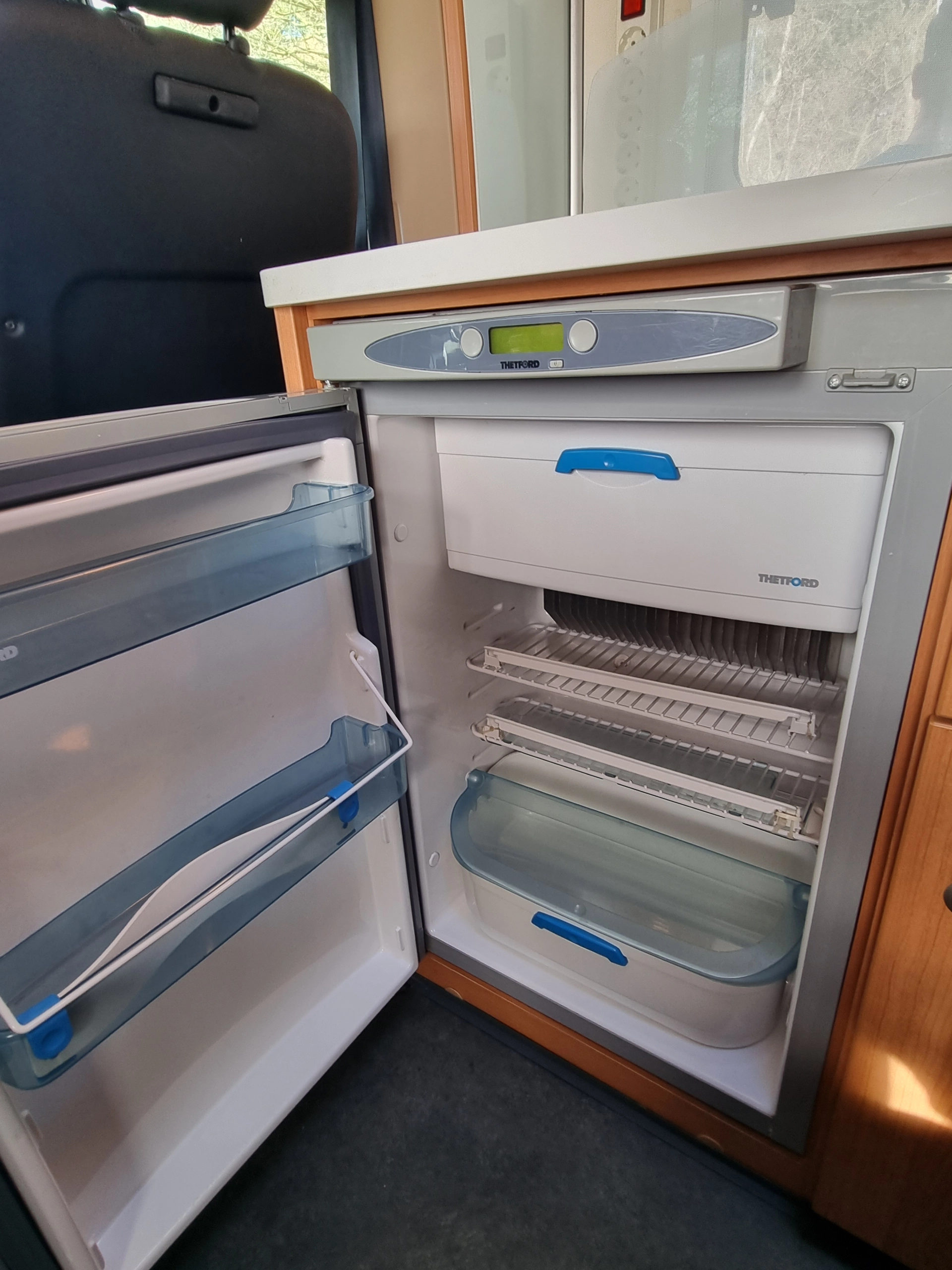 De camper beschikt over een omvormer, zodat er ook stroom gebruikt kan worden als de camper niet aan stroom van de camping staat.